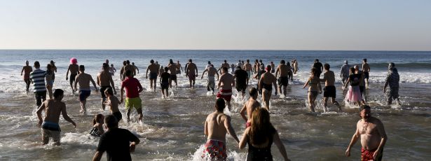 O vento forte, a ameaça de borrasca e a agitada ondulação marítima não impediram que dezenas de "corajosos" banhistas, novos e velhos, homens e mulheres, mergulhassem nas águas de Carcavelos, cumprindo uma tradição com 73 longos anos.